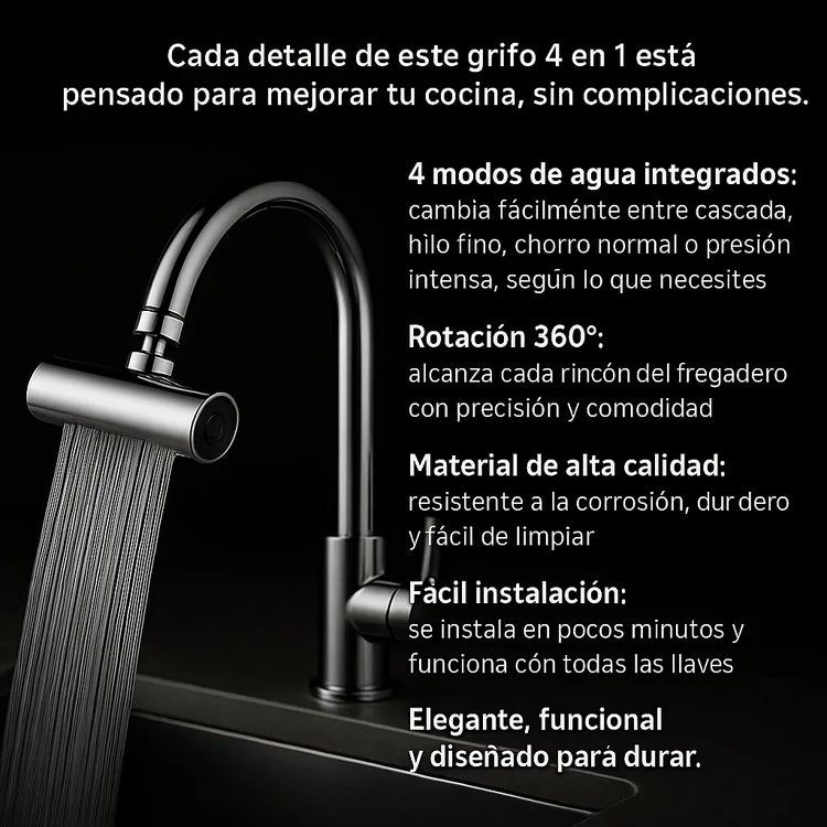 Grifo Multifuncional 4 en 1 · Ahorra Agua y Transforma tu Cocina
